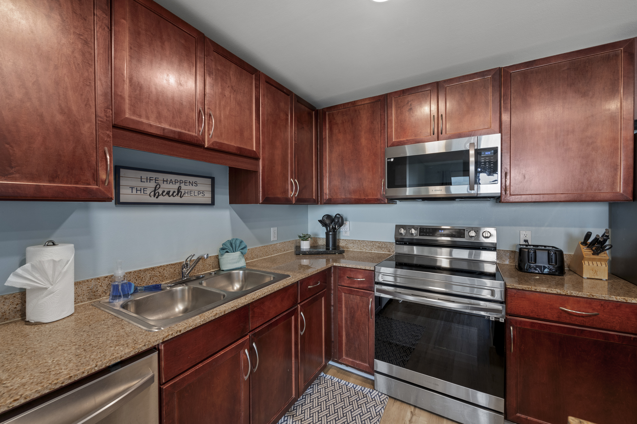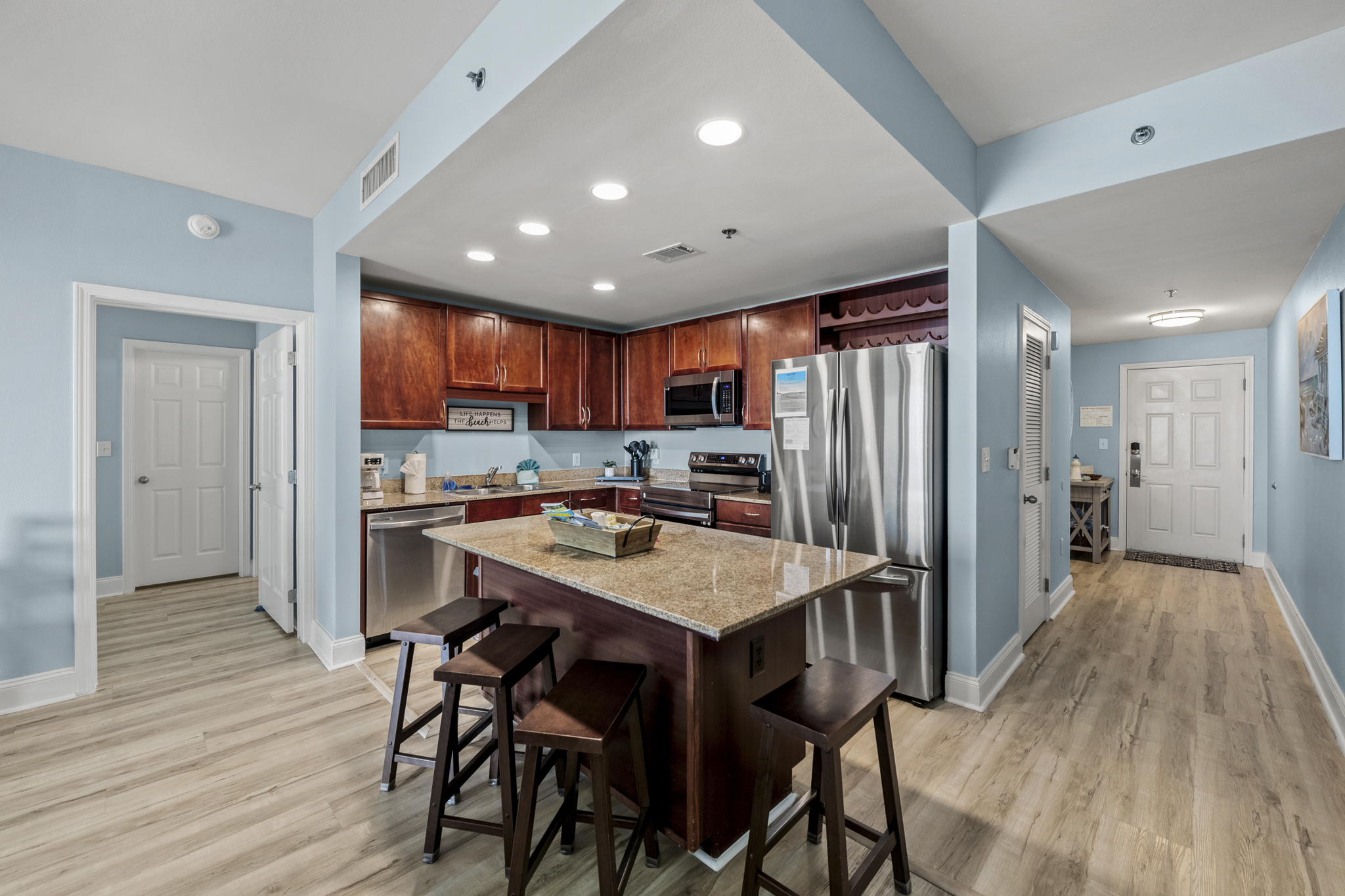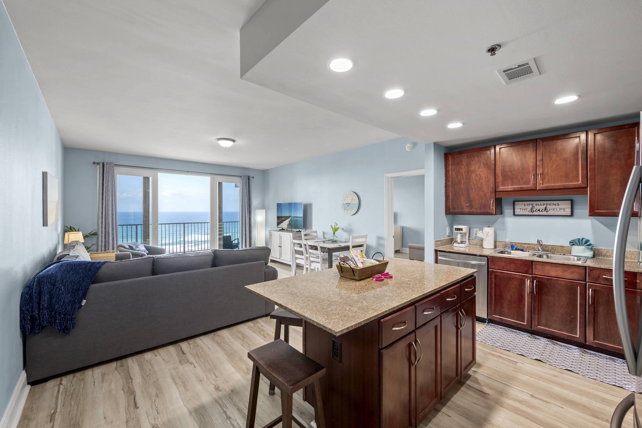 We hope you'll love our 3-bed/2 bath/ beach view condo with HUGE balcony & a fabulous view of the the Gulf. "Southern Lights" is just steps (2 minutes by foot) from one of the country's most exceptional beaches, centrally located, walkable to many activities & attractions or you can stay on property to enjoy the dining and shopping on site or across the street at world famous Pineapple Willy's. We have 5 pools & 2 hot tubs, a 2 story fitness area with a gulf view on property exclusively for our guests to enjoy! Laketown Wharf recently added “810 Bowling & Billiards” to our entertainment offering. Located next to the main floor pool area and fun for the whole family! Our place offers something for everyone and is large enough for your whole group to enjoy without feeling crowded.